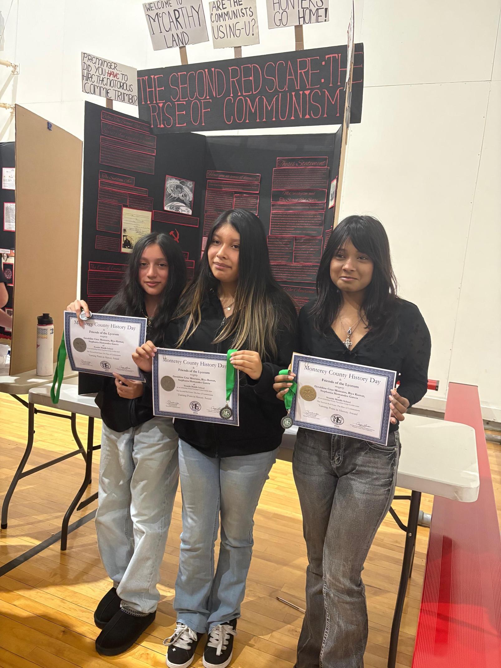 Geraldine Cruz Montano, Riya Kumar, and Stephania Hernandez Garcia received the Turning Point in History Award and Honorable Mention for their exhibit, “The Second Red Scare: The Rise of Communism.”
