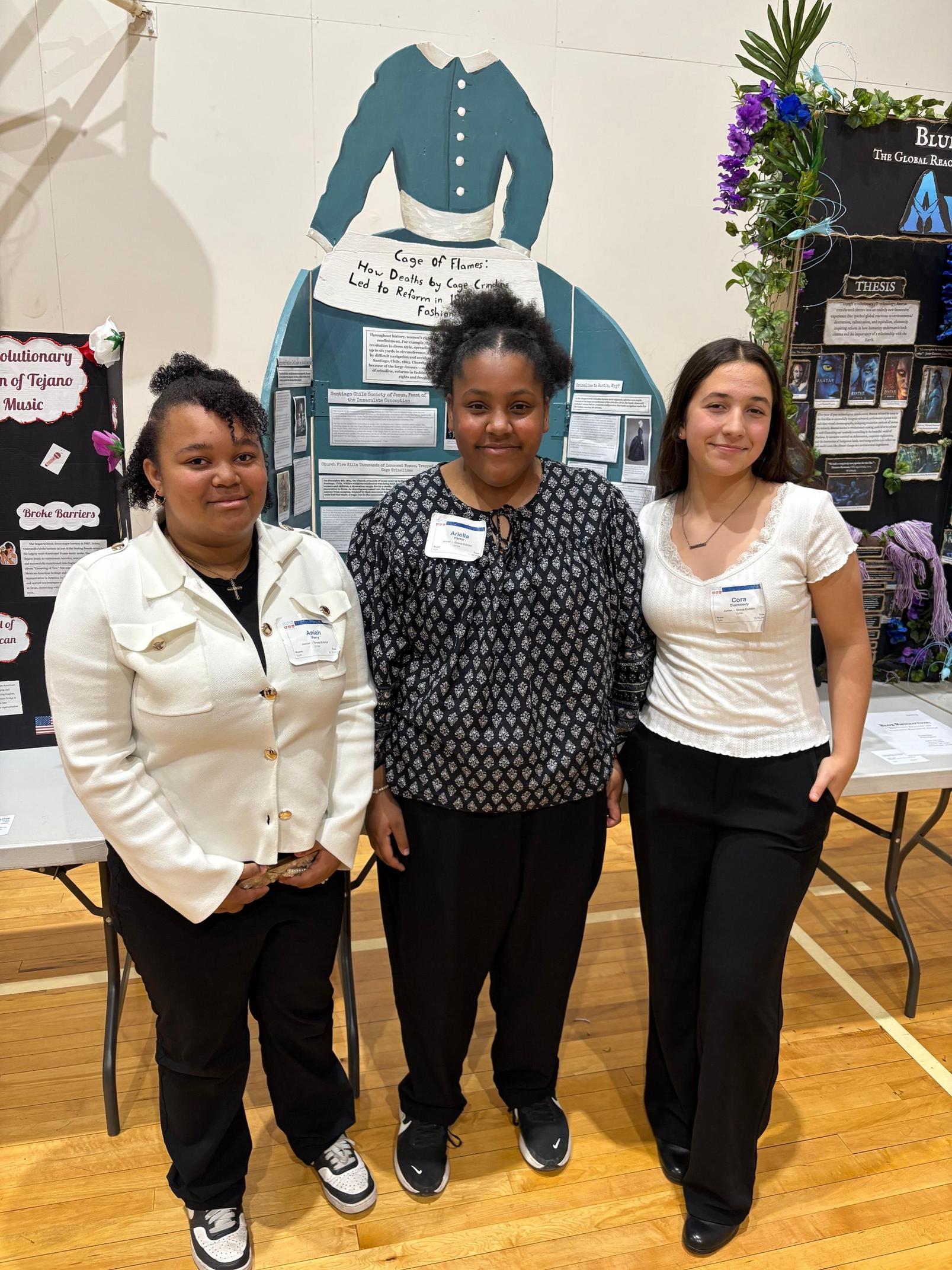 Cora Dunwoody, Aniah Perry, and Ariella Harris for their Junior Group Exhibit, “Cage of Flames: How Deaths by Cage Crinoline Led to Reform in 1860s Women’s Fashion,” which earned the Women in History Award.